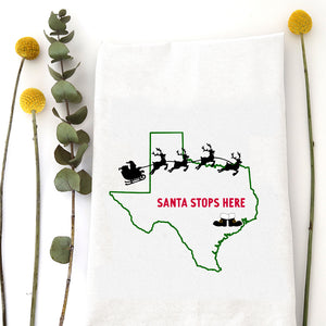 SANTA STOPS HERE (custom) - TEA TOWEL